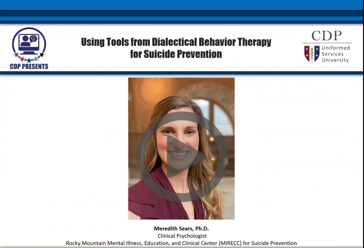In this 90-minute webinar, participants will learn the basic structure of Dialectical Behavior Therapy, or DBT. The session will review data on DBT’s efficacy in reducing suicide risk and highlight two core DBT concepts that can be used to address suicide risk: the “life worth living” and a behavioral chain analysis. First, the concept of a life worth living will be described in the context of a case example to illustrate how to collaboratively identify treatment goals, enhance client motivation, and reduce suicide risk. Second, a worked example of a behavioral chain analysis will be provided, followed by a solution analysis to show how to identify new skills that are needed to reduce a client’s risk. Participants will leave with practical ideas about how to weave these two elements of DBT into any behaviorally-based treatment paradigm to address suicidal behavior.