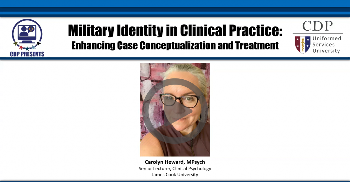 This webinar introduces an innovative approach to military mental health care through the integration of the Military Identity Model (MIM) with clinical case conceptualization. Drawing from recent systematic research, participants will learn how to move beyond cultural competence to actively engage with military identity as a mechanism for therapeutic change. The presentation examines how different forms of military identity - loyal, warrior, hidden, and disrupted - influence mental health outcomes and treatment engagement. Through case examples and practical demonstrations, clinicians will learn to assess and formulate cases using an identity-informed approach that enhances standard clinical frameworks. Particular attention will be paid to identifying identity disruption as a maintaining factor in mental health presentations and developing targeted formulations and treatment plans that align with military cultural values.